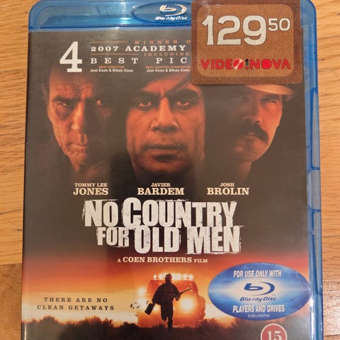 No Country for Old Men Blu-ray film regissert av Coen Brothers. Inneholder filmen i Blu-ray format med aldersgrense 15 år. Språk og tekst tilgjengelig på flere skandinaviske språk.