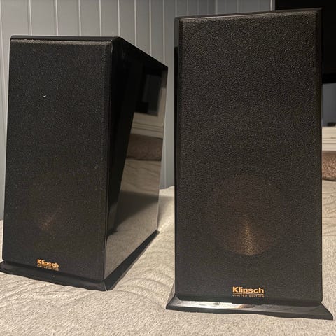 Et par Klipsch R-820f selges grunnet ikke så mye i bruk lengre, fungerer som dem skal. Bra lyd og bra trøkk i dem ved riktig forsterker.