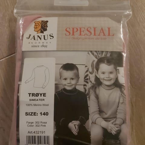 To helt nye ulltrøyer fra Janus størrelse 140 selges samlet for 350 kroner. Kan sendes mot porto.
