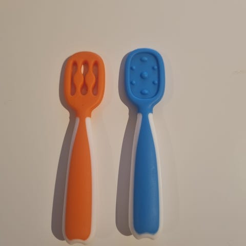 To pakker med bestikk til barn. Pakkene er åpnet, litt er tatt ut. Det resterende i pakkene er ubrukt.