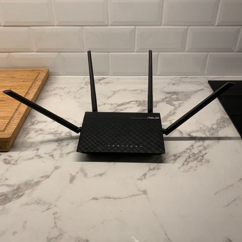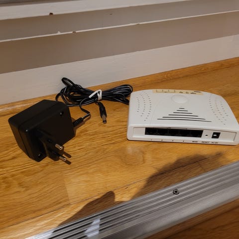 Airlink 83900 router med trådløs nettverkstilkobling. Enheten har tre antenner for forbedret signalstyrke og rekkevidde. Produktet leveres med original emballasje og er egnet for bruk i nettverksoppsett som krever trådløs tilkobling.