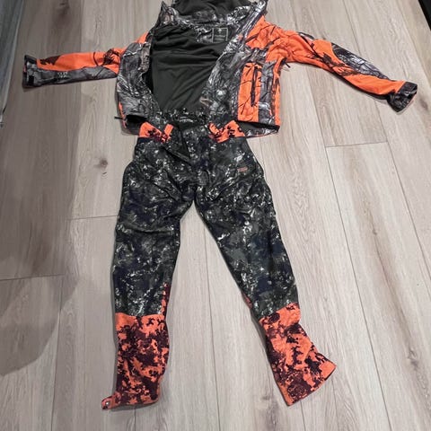Deerhunter Cumberland Quilted Jakke i størrelse 2XL. Jakken har camo- og oransje farger, er polstret med quiltet materiale og er designet for jaktbruk.