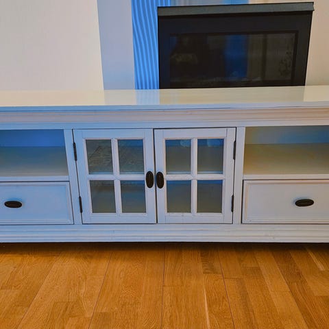 Nesten ubrukt TV-hylle med to skuffer.