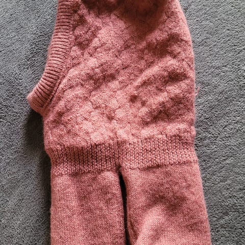 Myk og varm. Har litt bruksslitasje og noen små hull nederst.