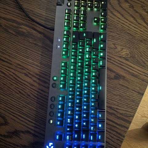 Selger et meget pent brukt Keychron V2 mekanisk tastatur. Brukt i 2 år uten problemer, og fremstår som helt nytt. Dette er "Knob"-versjonen med volumhjul og Keychron K Pro Red switcher (lineære).