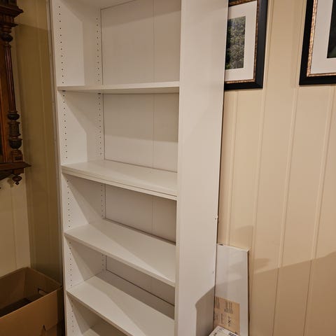 Kvit Billy bokhylle med forhøgnings modul som gjer at den blir 237 høg til saman. 2.5 år gamal, minimalt med slitasje.