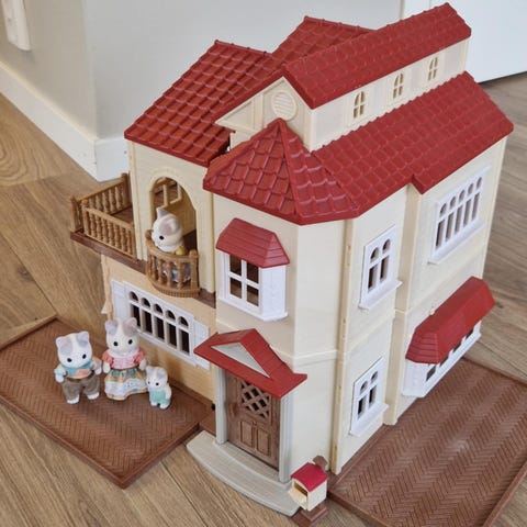 Selger et uåpnet Sylvanian Families Kitchen Cooking Set med ulike kjøkkenredskaper og matvarer.