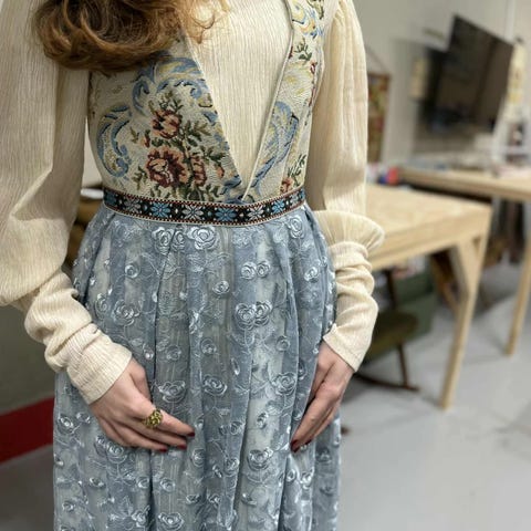 Nysydd festdrakt i fløyel,blondeskjørt og brokade. Følger med pyntebånd. Kan også lage dusker til båndet. Passer m/l. Blir justert etter dine mål ved salg 😊