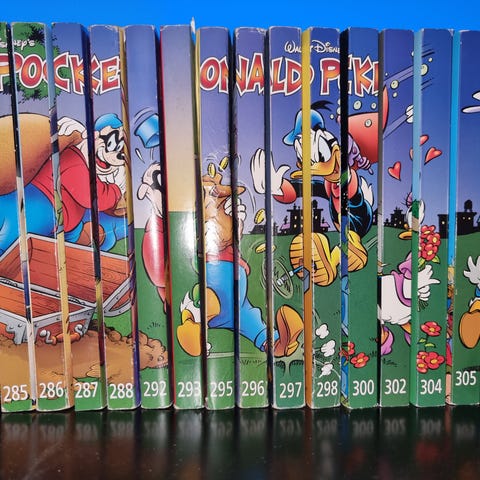 Donald Pocket Donald Duck pocketbøker i ulike utgaver. Serien inkluderer flere forskjellige nummer og historier med kjente Disney-figurer som Donald Duck og Mikke Mus. Bøkene egner seg for lesing og samling. Selges for 30kr stykk, bud kan gis.