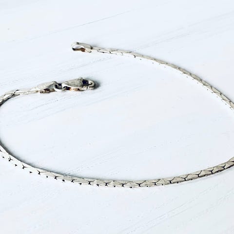 Sølvfarget metall, pent, ikke slitt, skal virke som oksidert sølv, men er i et metall.