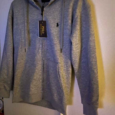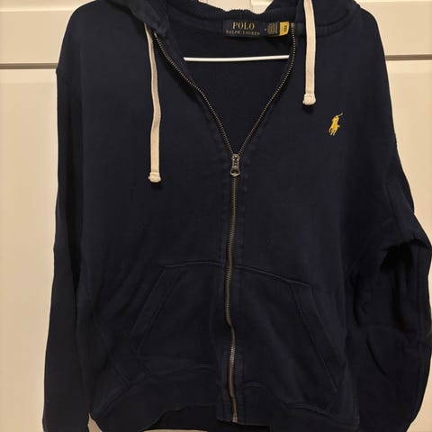 Ralph Lauren Polo hettejakke i blå bomull, størrelse M. Jakken har hette, glidelås foran, og lommer. Passer for menn.
