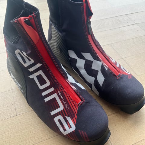 Alpina Comp Classic, str. 41 selges grunnet feil størrelse. Skoene har kun vært brukt på en kort skitur, og fremstår derfor som nye. Har i etterkant kjøpt samme sko i riktig størrelse, og er kjempefornøyd med skoene.