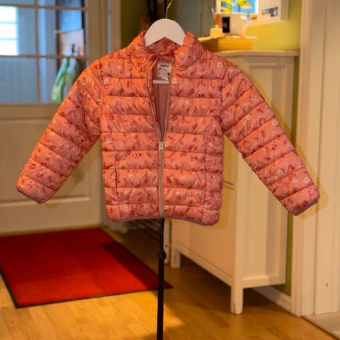 VindJakke i størrelse 116, designet for jenter.