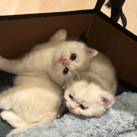 klorestativ, ekstra mat, kattedo, leker, skåler og bur kan følge med for billig penge.