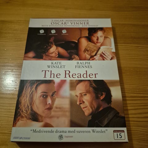 The Reader Blu-ray film med skuespillerne Kate Winslet og Ralph Fiennes. Filmen har norsk tekst og har ekstra materiale inkludert kommentarer og dokumentarer. Passer for voksne seere (15-årsgrense).