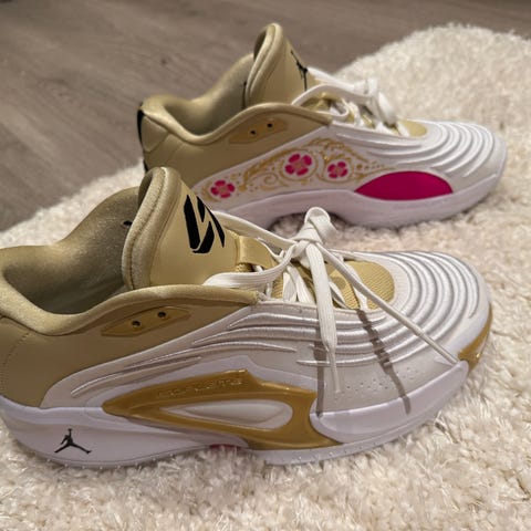 Nike Mercurial fotballsko i størrelse 35, med svart og gull farge. Skoene har knotter for bruk på gressbaner og er designet for fotballspillere. Materialet er syntetisk, og skoene har snøring for justering av passform.