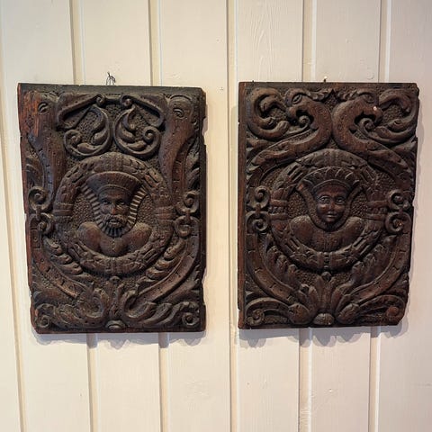 Nydelig antikk håndskåret ornament selges. Kan anvendes som ornament på veggen. Dersom man er litt kreativ og handy vil den gjøre seg veldig bra øverst på et speil, en ramme eller liknende.