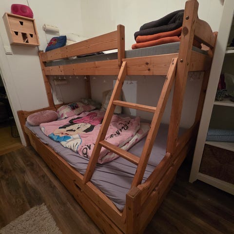 Familiekøyeseng i furu 75/120/200, med fine madrasser.