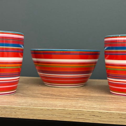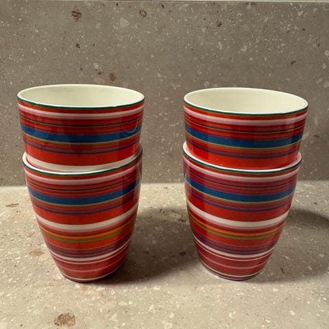 10 Iittala kopper med flerfarget stripemønster - Origo Krus 25 cl, Oransje