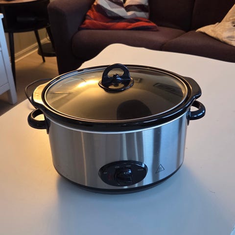 OBH Nordica Saveur Slow Cooker med en kapasitet på 4,7 liter. En svart slow cooker som brukes til langsom tilberedning av mat. Utstyrt med glasslokk og justerbar temperaturkontroll.