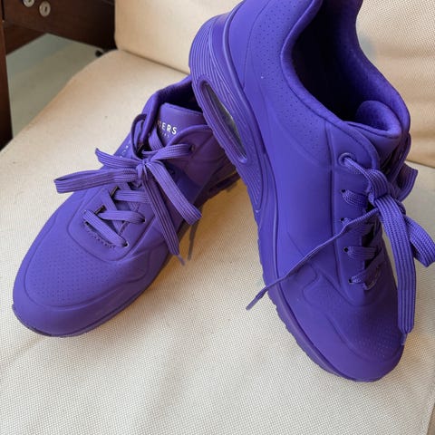 Brune Skechers Air-Cooled Memory Foam (Skechers Los Angeles) i størrelse 39. Veldig behagelige på foten, solid såle, med god støtte og demping. Selges da jeg bruker 38 og fikk disse i gave.