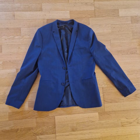 H&M dressjakke og bukse i størrelse M, laget av polyester. Fargen er svart. Passer til menn.