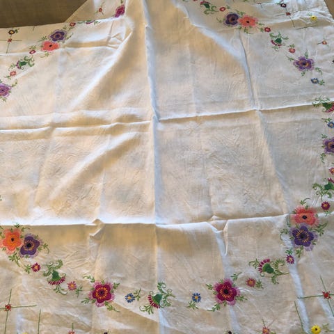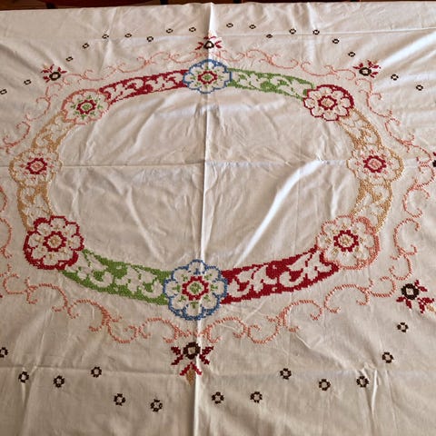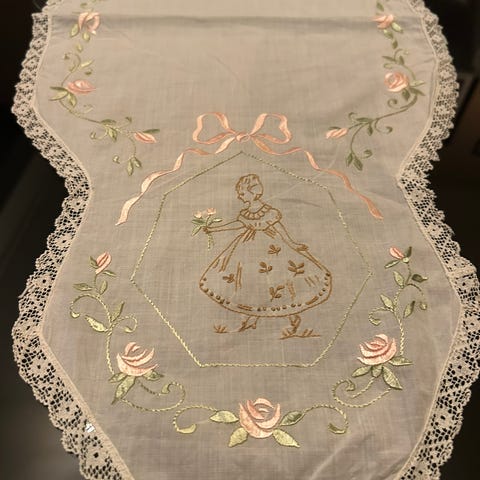 Håndbrodert rosa duk/brikke