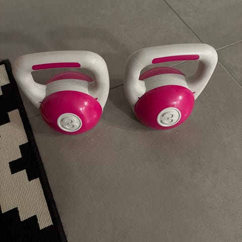 Reebok manual treningsvekter sett bestående av 1 stk. Manualene er rosa og hvite i fargen, og egner seg for styrketrening og generell trening. er på 3KG vær