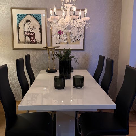 Selges grunnet overgang til et rundt stuebord. Har noen bruksmerker, så derfor selges den billigere