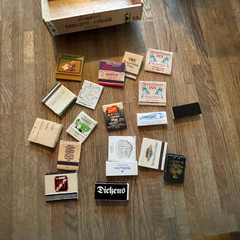 Fin samling ulike flate fyrstikker/esker.Mye amerikansk.Hotell/motell ol -Fin stand-bud