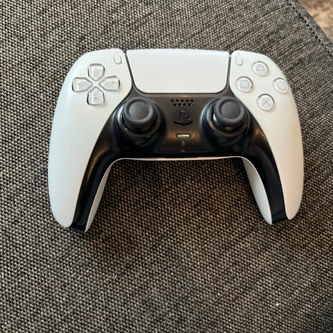 Sony DualSense trådløs kontroller i hvit farge, kompatibel med PlayStation 5. Kontrolleren har avanserte funksjoner for forbedret spillopplevelse.