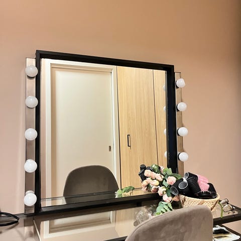 Selger et sminkespeil med lys. Speilet fungerer som det skal og er fint til sminke eller annet bruk.