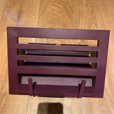 NY. Hvit Tablett- Bokholder. Stativ. Bokstøtte. Metall. Plast. Sammenleggbart.