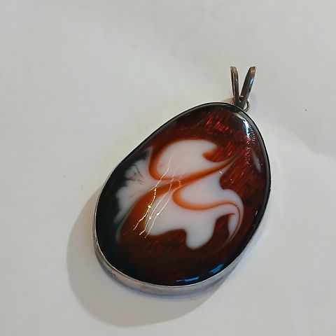 Anheng i sølv med fossil og rosenkvarts. Uten kjede