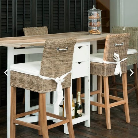 Benk og liten spiseplass i ett. Den er perfekt til en liten balkong. Er lett å «endre» fra benk til spiseplass.