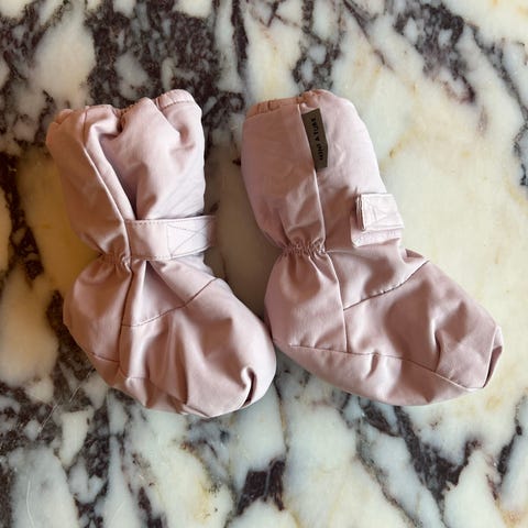 God og varme fotposer til baby 12-18 mnd. Gråblå, fra Mini a Ture. Veldig lite brukt. Ingen hull eller slitasje. Gode borrelåser, bitte litt rusk, men har ikke noe å si for funksjon. Ingen dyr eller røyk.