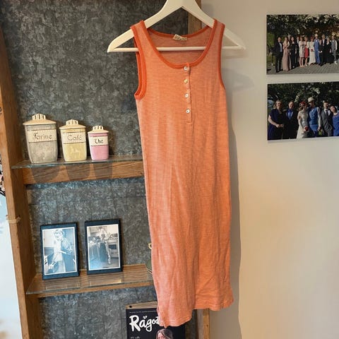 Pent brukt, ingen flekker og hull som jeg kan se. Jeg har likedan kjole jeg bruker, selger derfor denne. Ser nederst på kjolen er det slurvet med oppsying av kanten på innsiden fra produksjonen, så bør nok festes før det går opp mer.