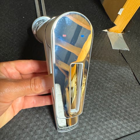 Selge pent brukt dusjhode i sølv farge. Dusjhodet har 3 vannstrålemønstre, som kan justeres via knappen på siden, men dette knappen litt skade (se bilde) men ikke problem og justere vannstråle, virker som skal. Har også vannfilter inne dusjhode.