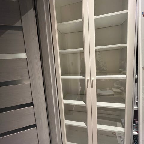 Skap/bokhylle med glassdør kr. 200