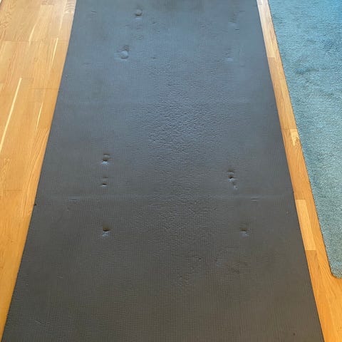 Yogamatte i lilla farge. Egnet for trening og yogaøvelser på gulv.