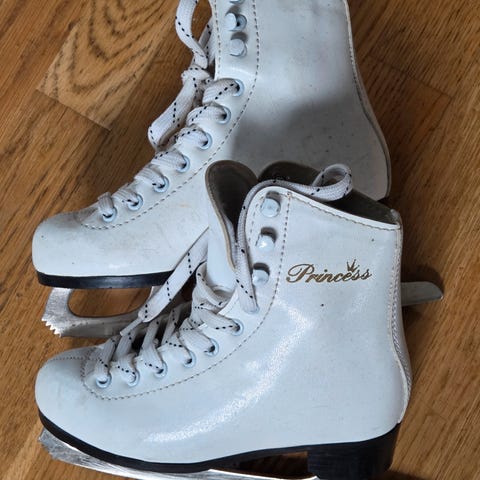 Hvite skøyter str 31. Kjøpt meget pent brukt, men ble for små før vi fikk brukt dem her.
