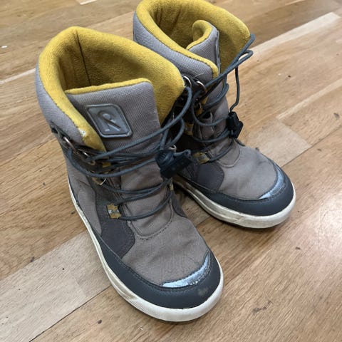 Svarte Reima vintersko str 33 Vanntett såle med varm isolert overdel. Snøring i toppen. Sålen har godt mønster for grep. Egnet for bruk i kalde og våte forhold.