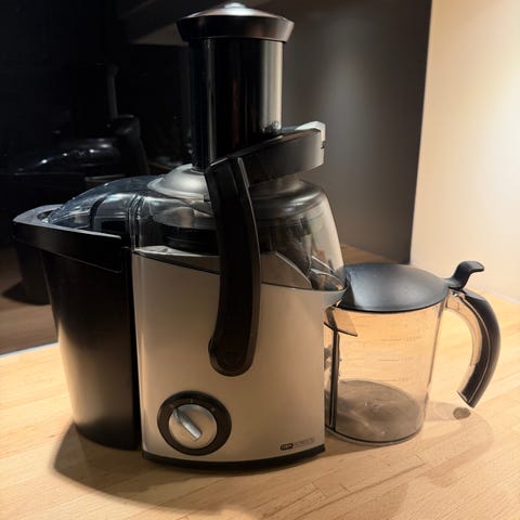 Juicemaskin fra OBH Nordica selges da den ikke brukes lenger. Egnet for å presse juice fra frukt og grønnsaker. Kommer med en beholder for juice.