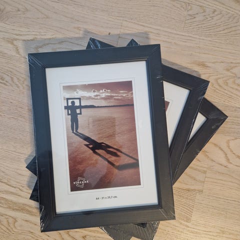 Målene som er oppgitt er målene som er oppgitt på rammen, dvs mål for plass til bilde. Når rammen er satt sammen overlapper rammen bildene litt så innermål målt utenpå rammen er noe mindre.