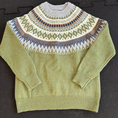 Ikke brukt strikkegenser i mykt garn. Jeg har strikket den selv. En L i dame og M i herrestr