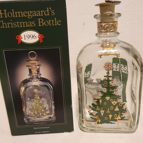 Holmegaard Jul, krus med hank fra 2014. Dekorative julemotiver i grønt og rødt. Kan sende med Postnord.