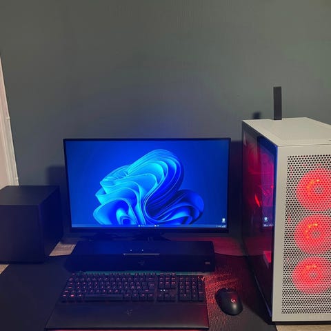 Selger en nylig ferdigbygd Inter Miami - Messi inspirert Gaming PC i Rosa og Svart med inkludert skjerm og utstyr.