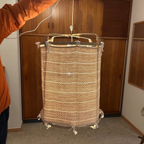 Flott lampe med trefot, passer perfekt på hytta.