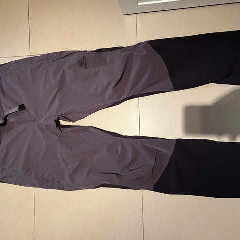 Buksen er grå med svarte forsterkninger. Designet for fottur med slitesterke materialer og funksjonelle detaljer som justerbar midje og flere lommer.