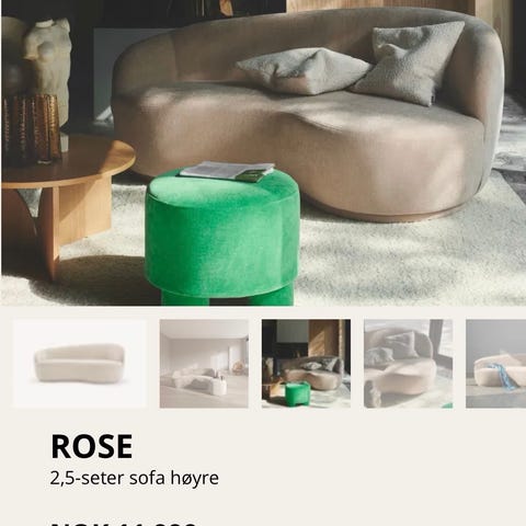 Pen hvit farge design sofa nesten ikke brukt. Grovt stoff.